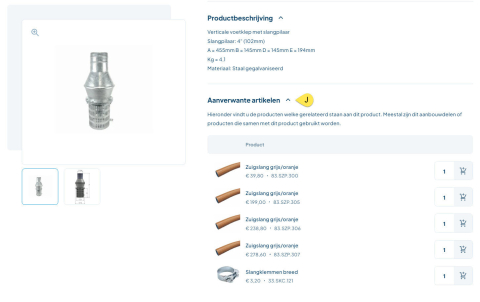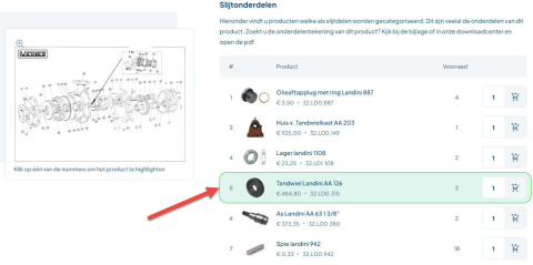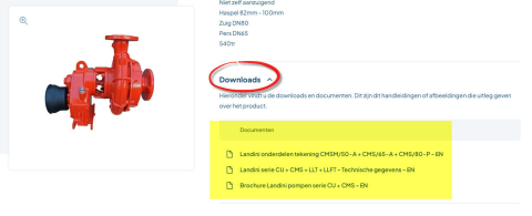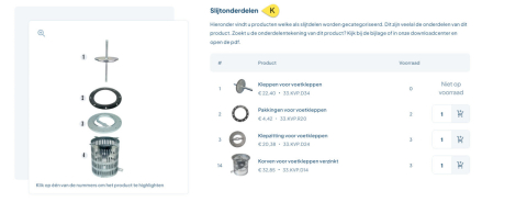 All this via the Wear parts "A" function, which you can find in the item itself. You only have to search for the pump in question via the search window and at the bottom of the page you will find all wear parts that are related to the parts drawing "B".