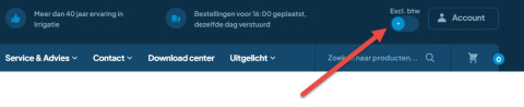 You can easily switch from inclusive and exclusive VAT prices in our webshop by clikcing the button next to the account logo.
